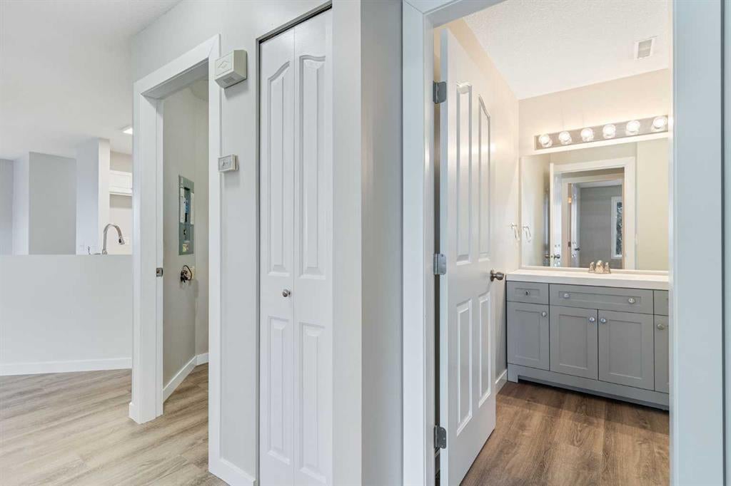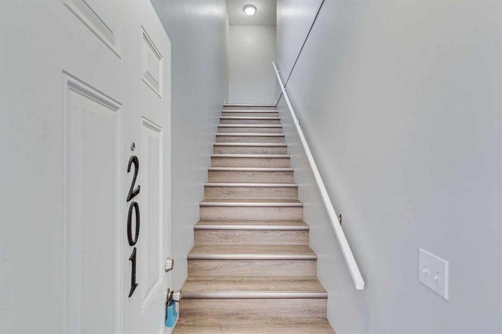 Welcome to #201, 608 19 St SE – a 2-bedroom, 1-bathroom bungalow-style second-floor condo that offers the opportunity to own, for yourself or as an investment property!) This unit is nice and bright, the kitchen is super functional, and the primary bedroom includes a spacious walk-in closet, providing plenty of storage. The laminate flooring is clean and easy to maintain. Enjoy the convenience of in-suite laundry and one parking spot, and plenty of on-street parking as well. Enjoy the evening sun on the private deck. Located in a in a great neighbourhood with easy access to amenities and quick access to Highway 2, this condo is the perfect place to call home!